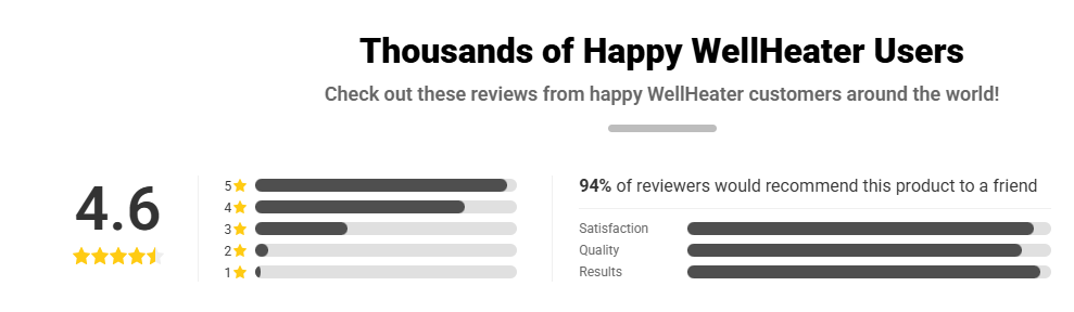 Testimonials, case studies, and examples found on this page are results that have been forwarded to us by users of WellHeater products and related products, and may not reflect the typical purchaser’s experience, may not apply to the average person and are not intended to represent or guarantee that anyone will achieve the same or similar results.